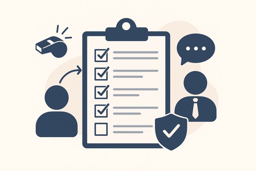 Kompletny przewodnik po elementach dobrej procedury zgłaszania naruszeń – od zakresu zgłoszeń, przez terminy i role, po ochronę danych oraz komunikację wewnętrzną. Po co firmie procedura whistleblowingowa? Procedura zgłaszania naruszeń porządkuje cały proces: definiuje, co można zgłaszać, kto przyjmuje zgłoszenia, jak wygląda postępowanie wyjaśniające, w jakim terminie udziela się informacji zwrotnej i jak chroni się […]